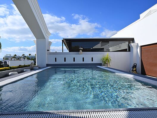 Detalle de la membrana armada Chandra en una piscina, transmitiendo una sensación acogedora.